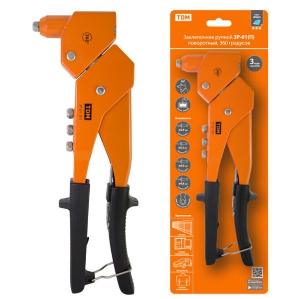 Назначение Для скрепления листовых материалов с помощью установки вытяжных заклепок разного диаметра.