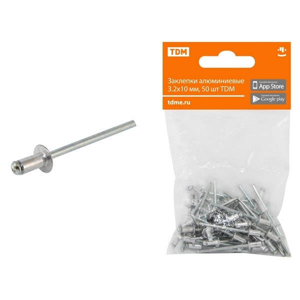 Комплектация Заклепки, 50 шт. Упаковка полиэтиленовый пакет с ярким картонным подвесом, содержащим всю необходимую информацию об изделии и индивидуальный штрихкод EAN-13