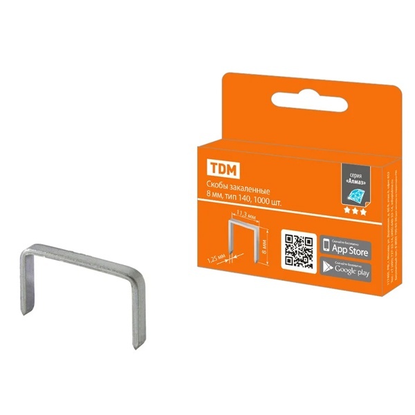 Скобы закаленные 8 мм, тип 140, 1000 шт, "Алмаз" TDM Electric