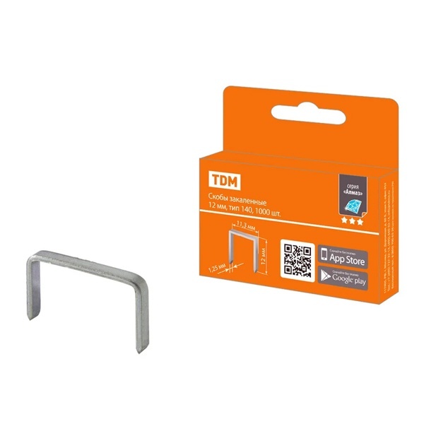 • Скобы закаленные TDM 12 мм, тип 140, 1000 шт, серия Алмаз