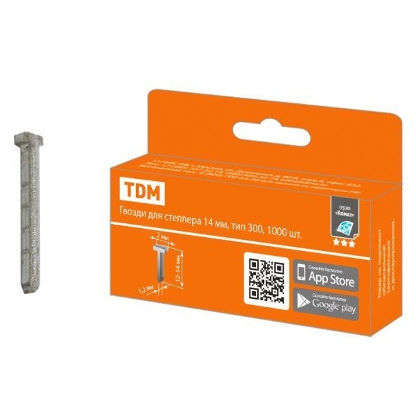 • Гвозди для степлера TDM 14 мм, тип 300, 1000 шт, серия Алмаз