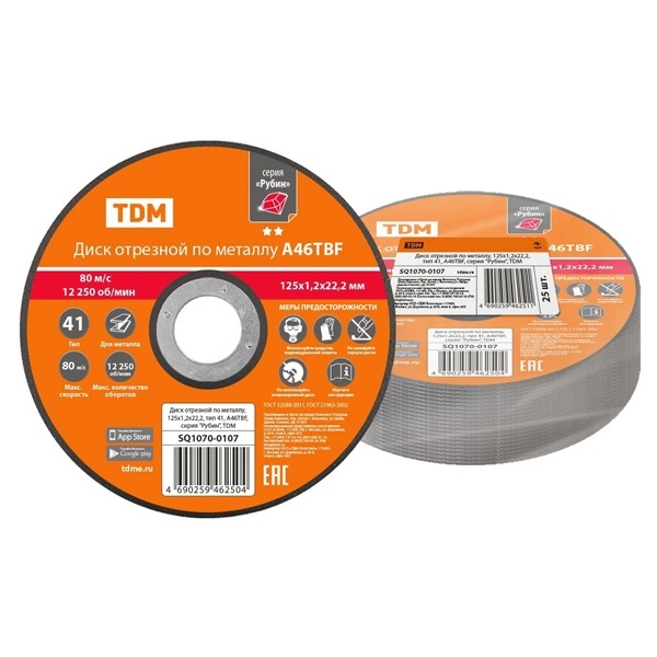 SQ1070-0107 Диск отрезной по металлу TDM Рубин 125х1,2х22,2, тип 41, A46TBF