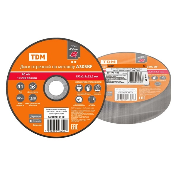 SQ1070-0110 Диск отрезной по металлу TDM Рубин 150х2,5х22,2, тип 41, A30SBF