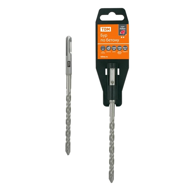 Бур по бетону, 6?160?100 мм, SDS-Plus, 2 резца, пластиковый держатель, 1 шт, "Рубин" TDM Electric