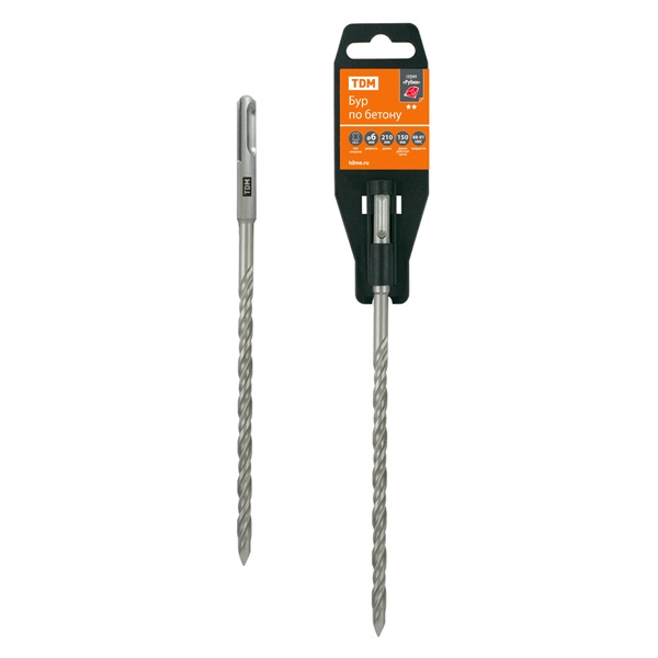 Бур по бетону, 6?210?150 мм, SDS-Plus, 2 резца, пластиковый держатель, 1 шт, "Рубин" TDM Electric