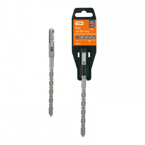 • Бур по бетону TDM Рубин SDS-Plus, 2 резца 8х160х100мм, пластиковый держатель, 1 шт