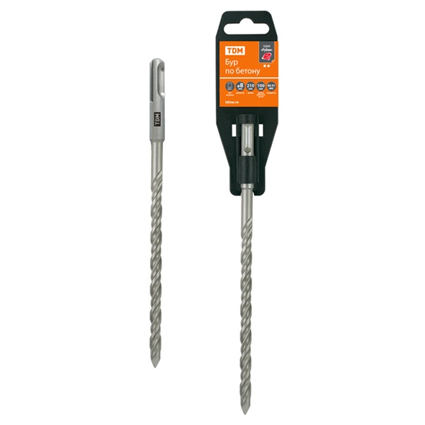 Бур по бетону, 8?210?100 мм, SDS-Plus, 2 резца, пластиковый держатель, 1 шт, "Рубин" TDM Electric