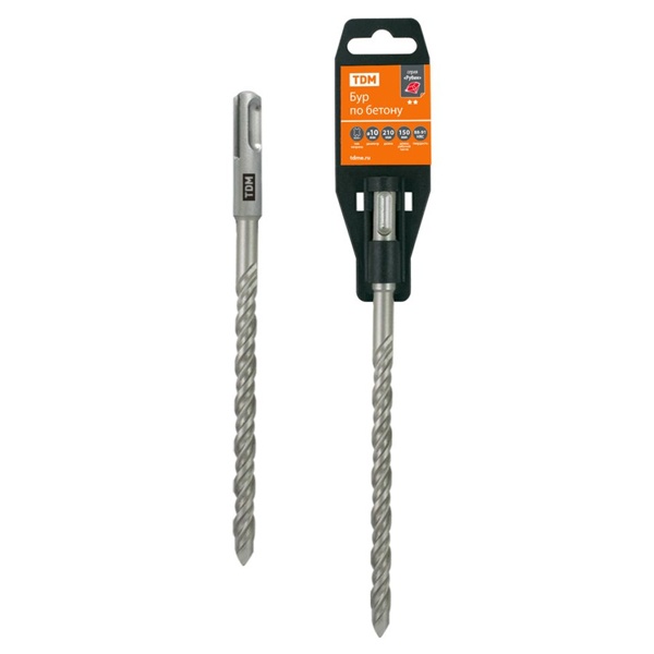 Бур по бетону, 10?210?150 мм, SDS-Plus, 2 резца, пластиковый держатель, 1 шт, "Рубин" TDM Electric
