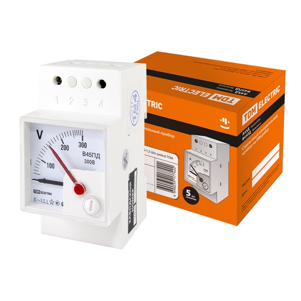 Стрелочный измерительный прибор напряжения до 300 Вольт на DIN рейку, ТДМ В45ПД SQ1102-0307