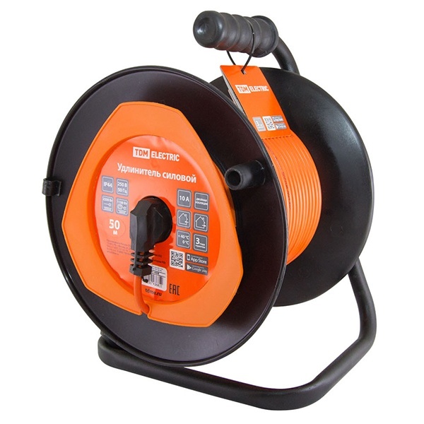 Удлинитель УК10-001 ТДМ на катушке с одной розеткой, длина провода 50 м SQ1301-0407