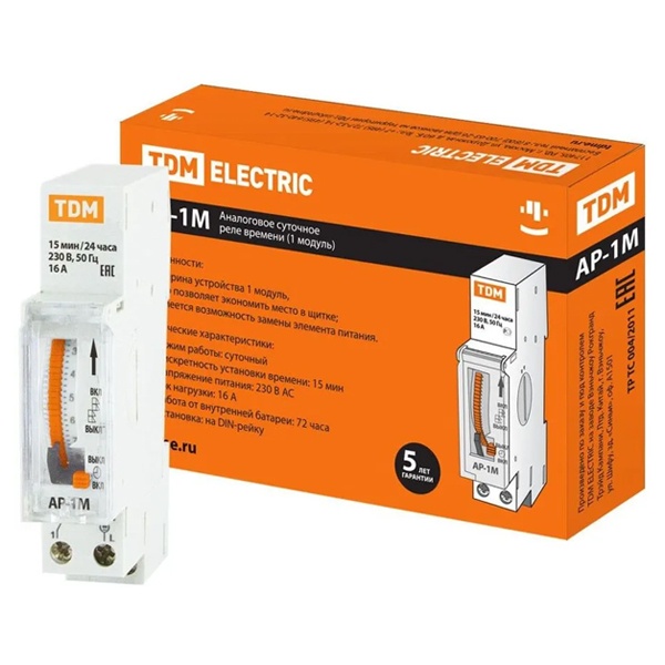 Таймер суточный аналоговый TDM АР-1М 16А шаг 15мин SQ1503-0021