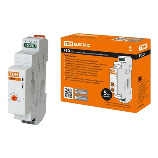 Реле времени РВО2-ВКЛ-0,6с/60сек-8А-24/230В-DIN (зад.вкл., 0,6с-60сек, 24-230В AC/DC) TDM Electric