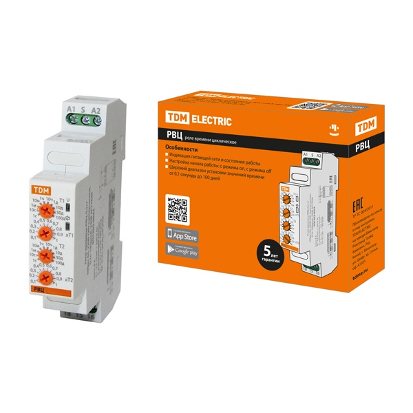 Назначение:Для коммутации электрических цепей с определенными, предварительно установленными выдержками времени. Применение:Применяются в схемах автоматики как комплектующее изделие. Преимущества:Возможность установки широкого диапазона значений времени от долей секунды до десятков дней, благодаря наличию двух переключателей. Реле РВМ имеет 10 режимов работы: задержка включения/выключения, цикл (одно время), формирователь импульса, бистабильное реле и др. Ряд моделей работают в широком диапазоне рабочих напряжений: от 12 до 230 В АС/DC. В реле РВЦ возможна установка времени до 100 дней. В реле РВМЦ имеется возможность пломбировки крышки реле. Реле РВМЦ имеет 24 режима работы. Реле РВМЦ имеет дисплей, на котором отображается номер режима, а также установленное и оставшееся время. Материалы:Корпус из негорючего самозатухающего пластика.