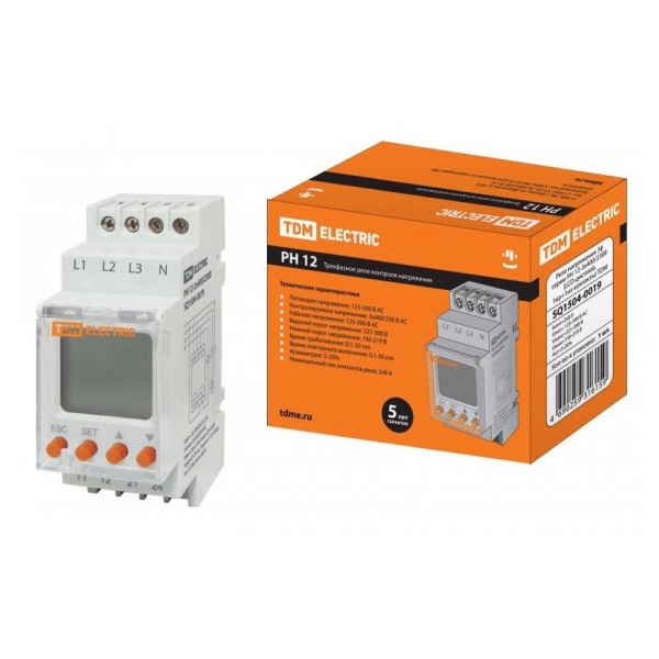 SQ1504-0019 Трехфазное реле контроля напряжения цифровое TDM РН-12 2х8А 3х400/230В 1НО+1НЗ