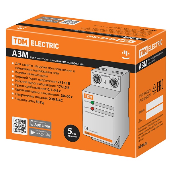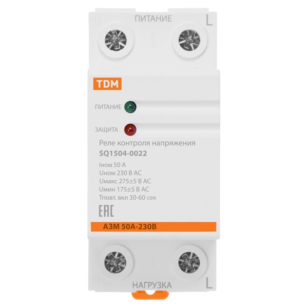 Назначение:Для контроля уровня напряжения в однофазных сетях переменного тока 220 В 50 Гц и отключения нагрузки в случае падения скачков напряжения электросети. Применение:Защита однофазного электрооборудования от повышенного и пониженного напряжения сети. Преимущества:Реле АЗМ-1М имеет самые компактные размеры на рынке, позволяющие экономить место в щитке (1 модуль-18 мм). АЗМ-LED - прямое подключение нагрузки до 63А. Самое доступное однофазное реле контроля напряжения на рынке. АЗМ-LED - имеет дисплей, отображающий текущее напряжение сети. Реле АЗМ 2019 года выпуска по сравнению со старой версией имеют уменьшенные размеры (2 модуля-36 мм). Материалы:Корпус из негорючего самозатухающего пластика.