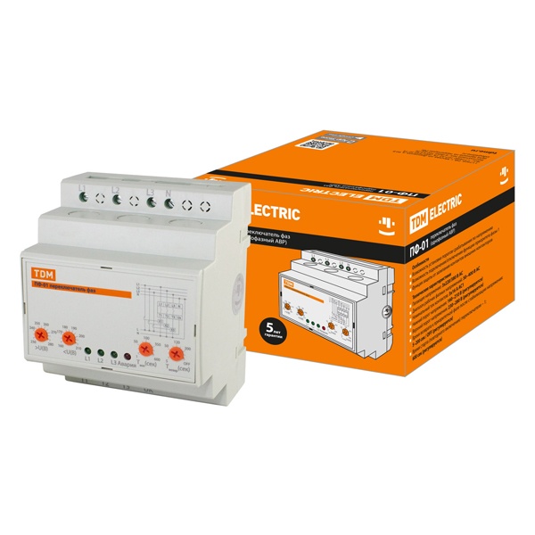 ПФ-01 переключатель фаз (однофазный АВР) с приорит.фазой (3х16А, 160-210В, 230-280В) TDM Electric