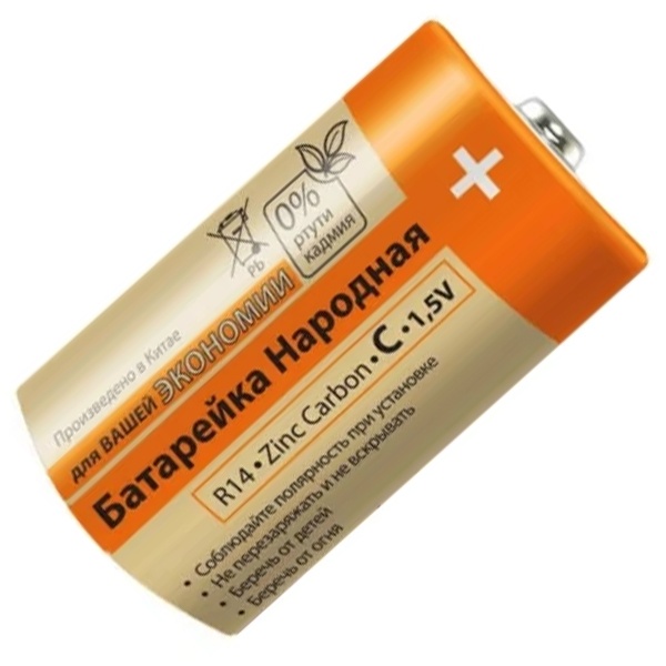 • Элемент питания C Народная R14 Zinc Carbon 1,5V SH-2 (упаковка 24 шт)