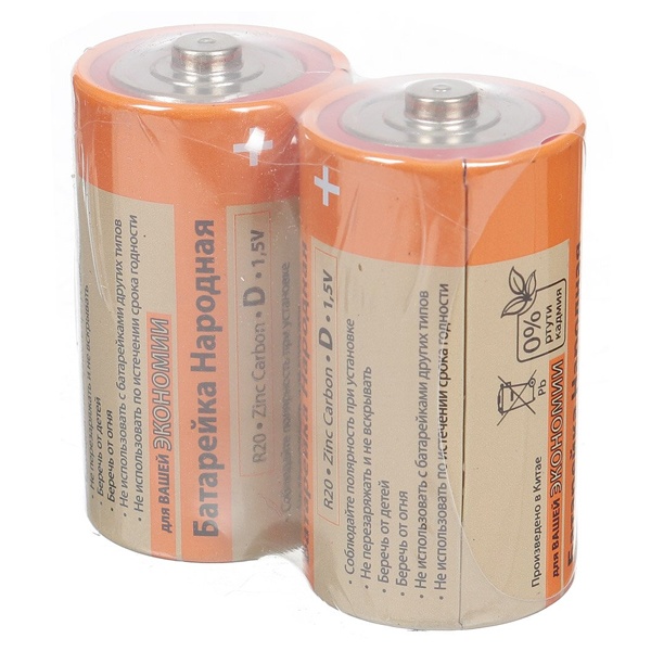 • Элемент питания D Народная R20 Zinc Carbon 1,5V SH-2 (упаковка 12шт)