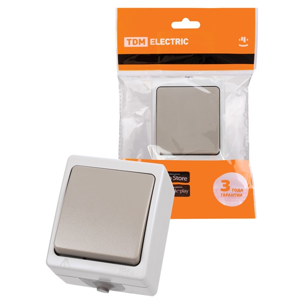 • Переключатель одноклавишный TDM открытой установки Вуокса 10А IP54 серый