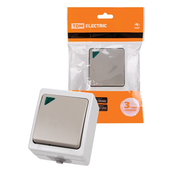 Влагозащищенный механизм переключателя с одной клавишей с подсветкой, накладного монтажа SQ1803-0005