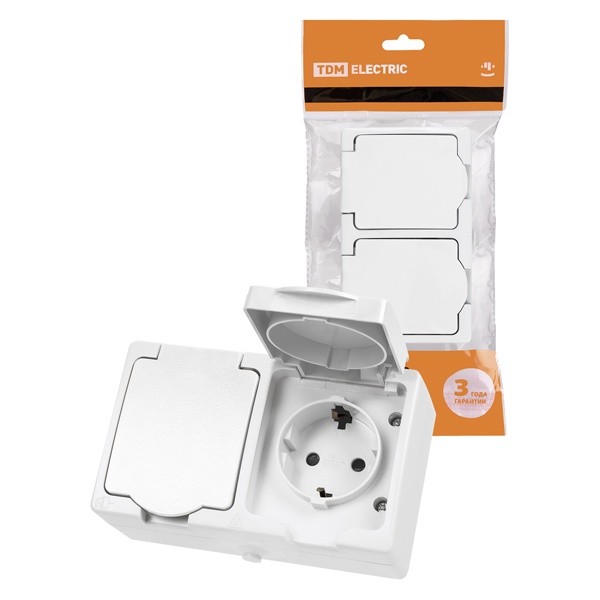 • Розетка двойная TDM 2П+3 (горизонтальная) открытой установки Вуокса 16А IP54 белый
