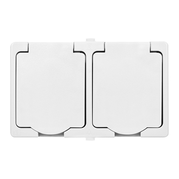 Влагозащищенный механизм двухместной розетки с крышкой, накладного, горизонтального монтажа SQ1803-1008
