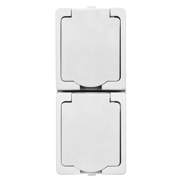 Влагозащищенный механизм двухместной розетки с крышкой, накладного, вертикального монтажа SQ1803-1009
