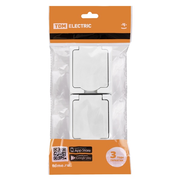 • Розетка двойная TDM 2П+3 (вертикальная) открытой установки Вуокса 16А IP54 белый