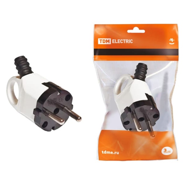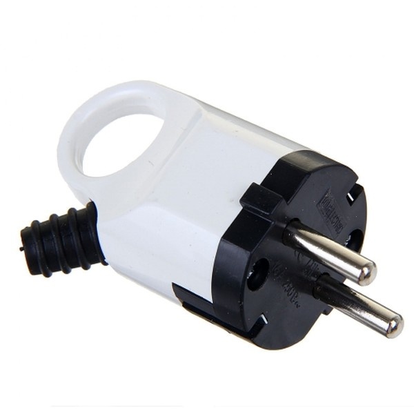 Белая электрическая вилка с кольцом, боковым подключением и заземляющим контактом 16 Ампер, ТДМ SQ1806-0005