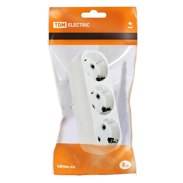 Разветвитель в розетку на 3 гнезда с заземлением ТДМ SQ1806-0033