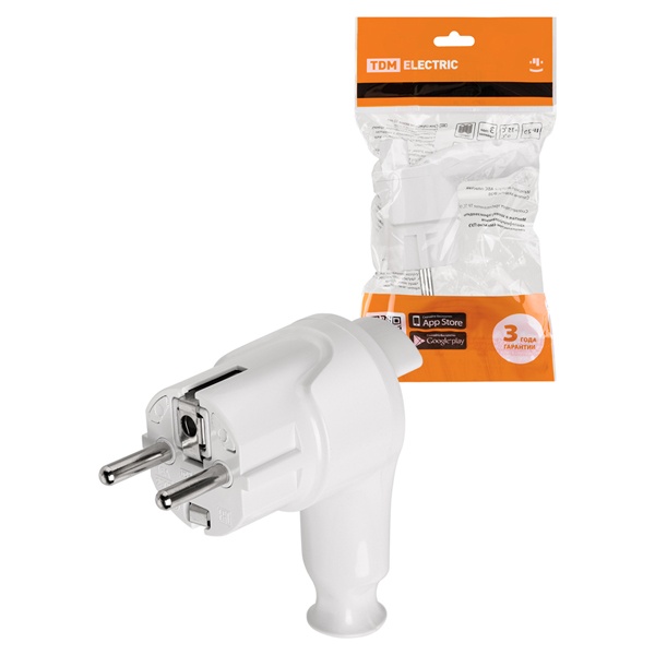 Белая электрическая вилка с механизмом извлечения, боковым подключением и заземляющим контактом 16 Ампер, ТДМ SQ1806-0398