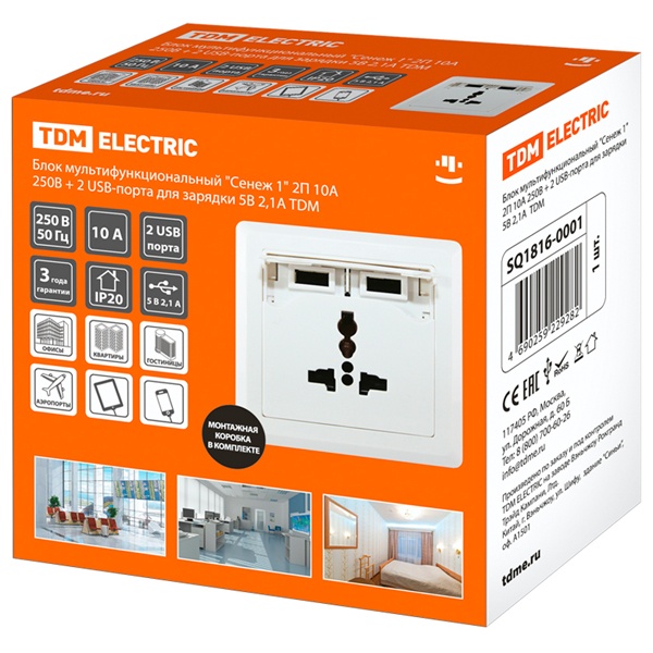 Изделие предназначено для присоединения к электрической сети переменного тока напряжением до 250 В нормальной частоты 50 Гц электрических установок активной мощностью не более 4000 Вт, а также для зарядки мобильных устройств через USB-разъемы (порты) постоянного тока напряжением 5 В.
