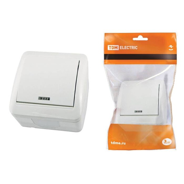 Выключатель 1-кл. открытой установки с подсветкой IP44 10А белый "Селигер" TDM Electric