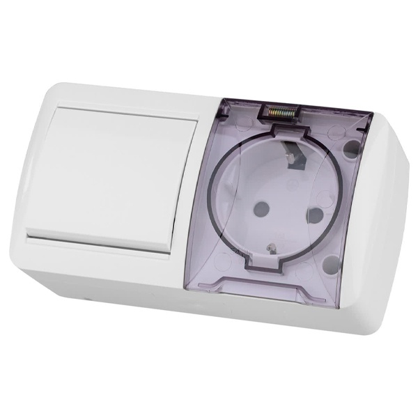 Компактный и надежный блок "Селигер" сочетает в себе одноклавишный выключатель и розетку с заземляющим контактом. Идеальное решение для установки в помещениях с повышенной влажностью или пылью: на балконах, в гаражах, мастерских, подсобных и технических помещениях, а также на дачах.