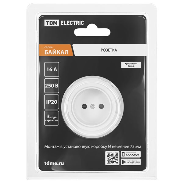 • Розетка TDM Байкал 2П 16А 250В шторки белая