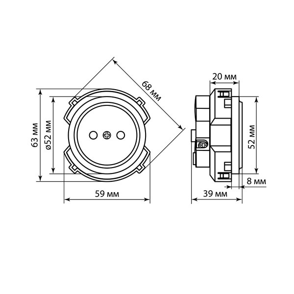 Розетка с защитными шторками предназначена для встраиваемого монтажа. Имеет заземление и допустимую нагрузку по току 16А.