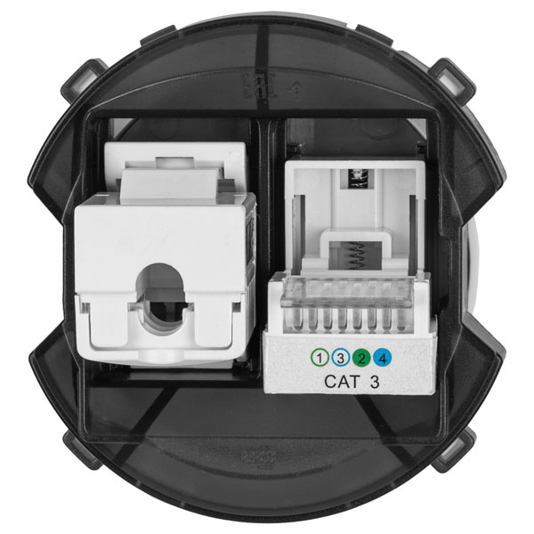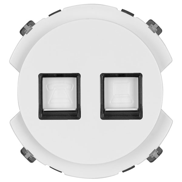 Розетка комбинированная RJ11/RJ45 от TDM предназначена для подключения телефона и компьютера. Корпус выполнен в белом цвете и имеет встраиваемый монтаж.