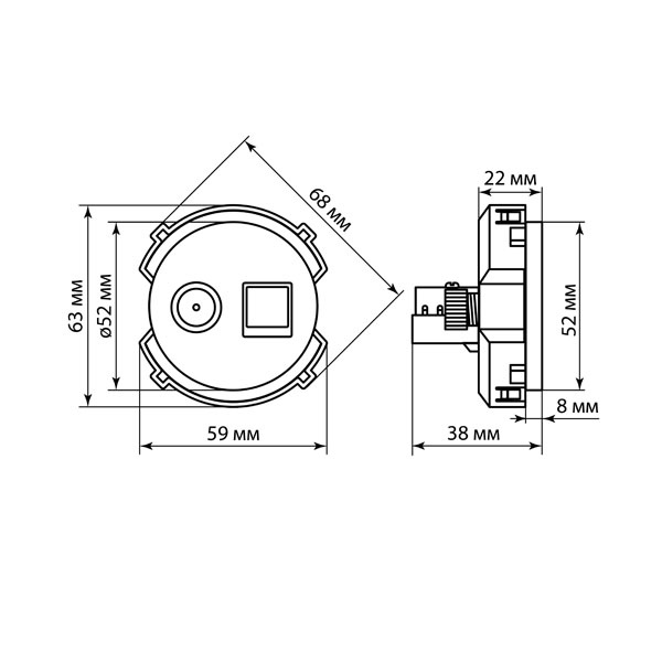 Розетка комбинированная RJ11 + TV предназначена для скрытой установки в жилых и коммерческих помещениях. Модель выполнена в классическом стиле и оснащена одним разъемом RJ11 для телефонного подключения и одним разъемом для телевизионного сигнала, что позволяет экономить место и удобно объединить два вида подключения в одной точке.