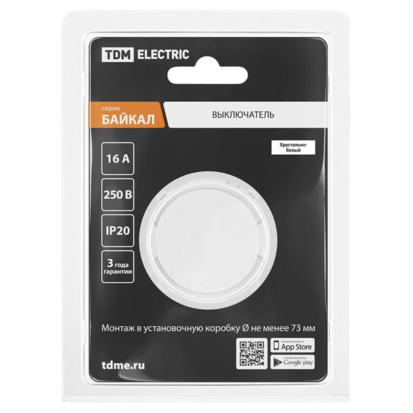 Встраиваемый 1-клавишный выключатель Байкал, цвет белый SQ1819-0030