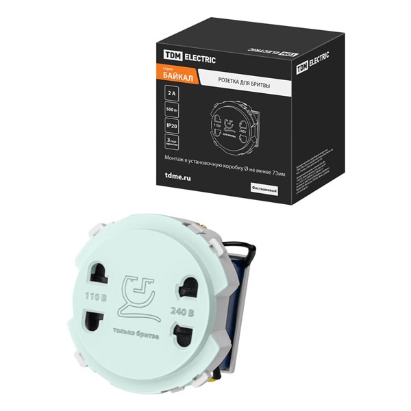 Розетка для бритвы "Байкал" предназначена для подключения электробритв и других приборов малой мощности в ванных комнатах и санитарных узлах. Она устанавливается скрытым способом в стену, что обеспечивает аккуратный внешний вид и защищает электропроводку от влаги.