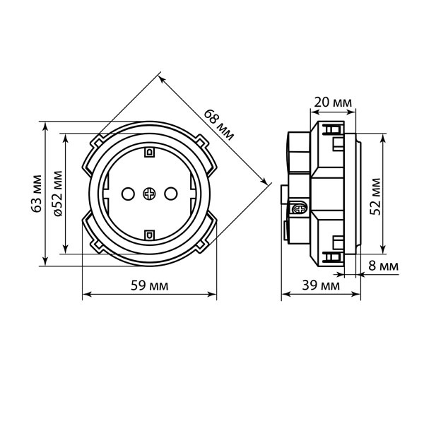 Розетка с защитными шторками предназначена для встраиваемого монтажа. Имеет заземление и допустимую нагрузку по току 16А.