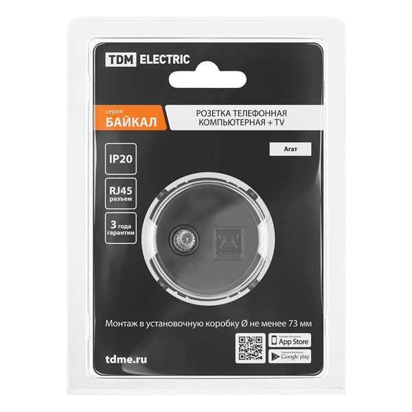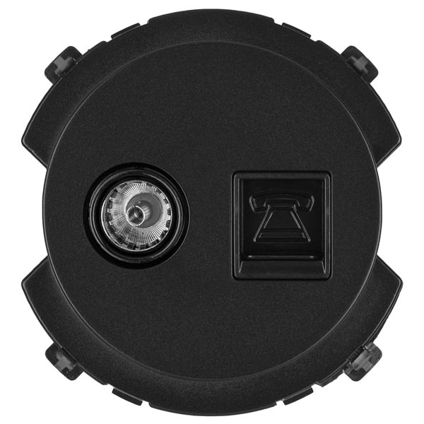 Встраиваемая комбинированная розетка с телефонным и антенным разъемом, цвет агат SQ1819-0218