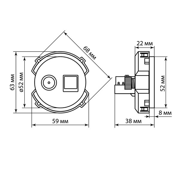 Розетка комбинированная RJ45 + TV предназначенная для подключения как телевизионного кабеля, так и сетевого оборудования по стандарту Ethernet (RJ45). Она сочетает в себе телевизионный выход и сетевой разъём, что позволяет минимизировать количество розеток на стене и упрощает организацию подключения в доме или офисе.