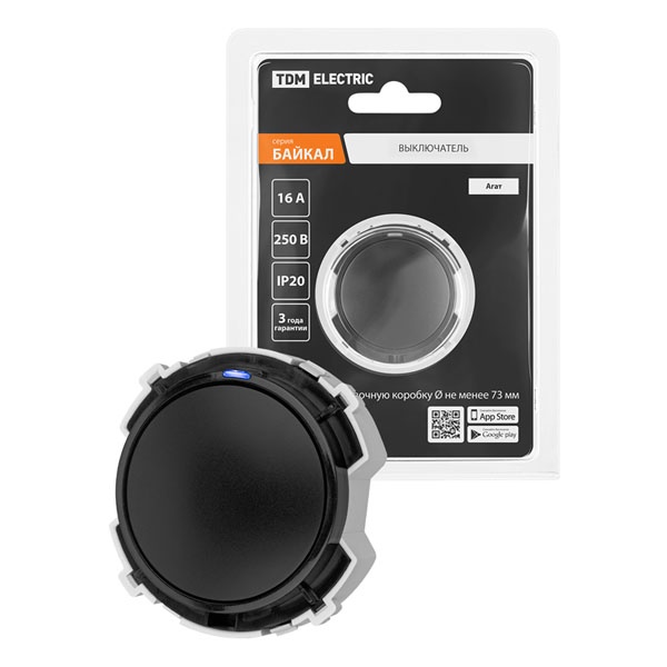 Встраиваемый 1-клавишный проходной выключатель Байкал кнопочного типа, цвет агат SQ1819-0223