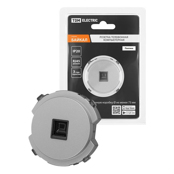 Однопостовая слаботочная сетевая розетка с разъемом RJ45 скрытой установки, цвет платина SQ1819-0314
