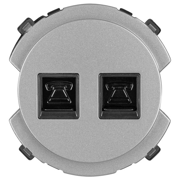 Слаботочная двухпостовая розетка с телефонным разъемом RJ11 скрытой установки, цвет платина SQ1819-0315