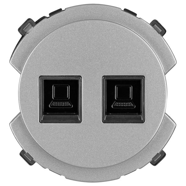 Двухпостовая слаботочная сетевая розетка с разъемом RJ45 скрытой установки, цвет платина SQ1819-0316