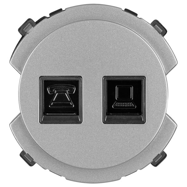 Информационная розетка скрытого монтажа с разъемами RJ11+RJ45 цвета платина SQ1819-0317