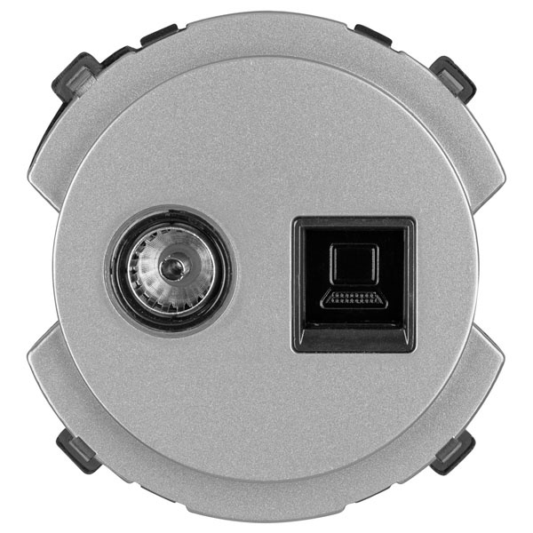 Розетка комбинированная RJ45 + TV предназначенная для подключения как телевизионного кабеля, так и сетевого оборудования по стандарту Ethernet (RJ45). Она сочетает в себе телевизионный выход и сетевой разъём, что позволяет минимизировать количество розеток на стене и упрощает организацию подключения в доме или офисе.
