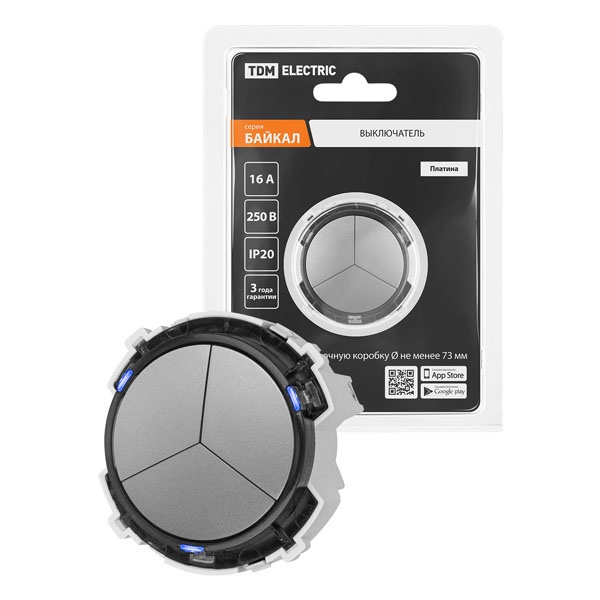 • Кнопочный выключатель трехклавишный TDM Байкал 16А 250В платина